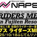 10月のイベントは「カワサキプラザ越谷リニューアル記念イベント」「カワサキプラザ加古川店頭イベント」「Busa-Tomo.Net Hayabusa北陸ミーティング」「ナップス ライダーズMEET」「Ninja TRIBE FES 2025」「ナップス豊橋8周年記念祭」