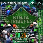 10月のイベントは「カワサキプラザ越谷リニューアル記念イベント」「カワサキプラザ加古川店頭イベント」「Busa-Tomo.Net Hayabusa北陸ミーティング」「ナップス ライダーズMEET」「Ninja TRIBE FES 2025」「ナップス豊橋8周年記念祭」