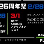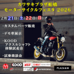 2026年イベントは2月開始。「カワサキプラザ船橋店様店頭イベント」「カワサキプラザ焼津店様店頭イベント」