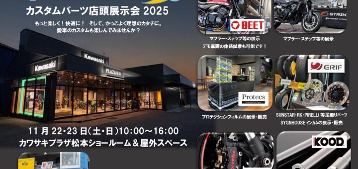 朝晩の空気がぐっと冷え込み、エンジンが一段と気持ちよく回る季節。11月もライダーのためのイベントが多数開催されます。 各メーカー様の最新製品やカスタムパーツ展示、販売。キッチンカーやトークショー、イベ...