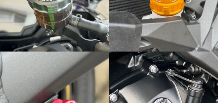 STRIKERアルミビレットパーツ『リザーバータンクキャップ、オイルフィラーキャップ、リアスタンドフックセット』 開発中
