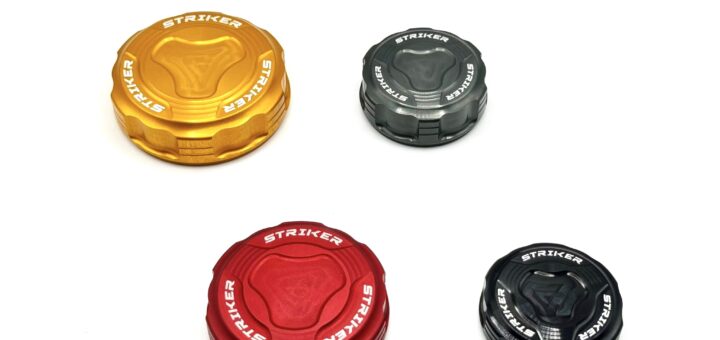 STRIKER『アルミビレットリザーバータンクキャップ ニッシン、ブレンボ各種オイルタンク用』発売!
