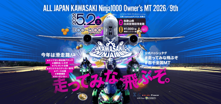 5月のイベントは「All Japan Kawasaki Ninja1000 Owner’s Meeting」「テイスト・オブ・ツクバ皐月の陣」「Zest Cuore NEO CLASSIC MEETING 2026 KOZAKI」「北関東カワサキプラザ走行会」