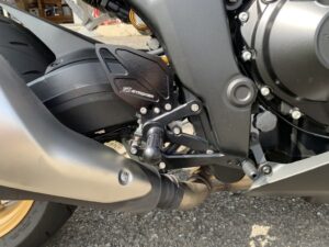 ベースエンジンであるCBR1000RRと同様にエンジン側に装着されたレーシーなスタイルを引継ぎ配置。
