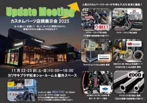 〇バイクシーズンもそろそろラストスパート!!。今年もKawasakiプラザ松本店様の店頭イベントに出展させて頂きます。気になっていますNinja1100SX/SEデモ車両、新製品ビレットパーツを実際にご覧になれるチャンスです。