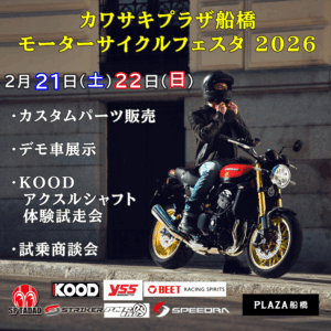 〇昨年「五感で楽しめる空間」に加えて、新たなコンセプトで構成し店舗をリニューアルオープンしましたKawasakiプラザ船橋店様にて店頭イベントが開催されます。STRIKERも出展させて頂きます。Ninja1100SX/SE、Z900RSを展示予定です。Ninja1100SX/SEがデモ車両に加わってから初めての展示となります。是非、触れて、跨って、ポジション等を体感してください。皆様のお越しをお待ちしております。